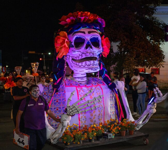 En la comparsa tradicional que partió de la zona norte de la capital y concluyó en el zócalo de Oaxaca solamente participaron más de 10 mil personas, la mayor parte representantes de los pueblos originarios que danzaron ataviados de calaveras por las principales calles y avenidas acompañados de carros alegóricos alusivos a la temporada