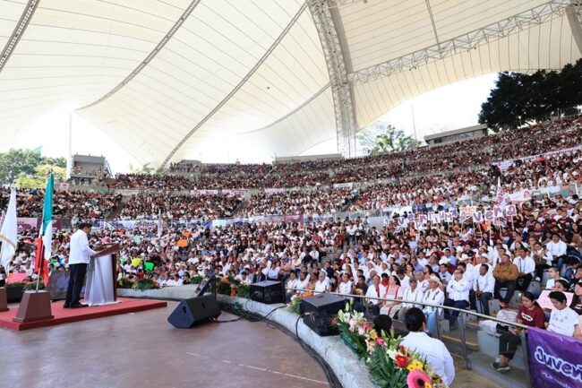 Ante el pueblo oaxaqueño y desde el Auditorio Guelaguetza ofreció:
