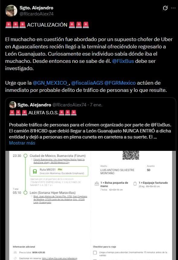 En las reacciones existe un comentario de la desaparición de un joven: “Eso es negligencia en el servicio! Y como daño colateral una persona desaparecida nomas porque por sus huev0s el chófer no quiso entrar a Leon”.