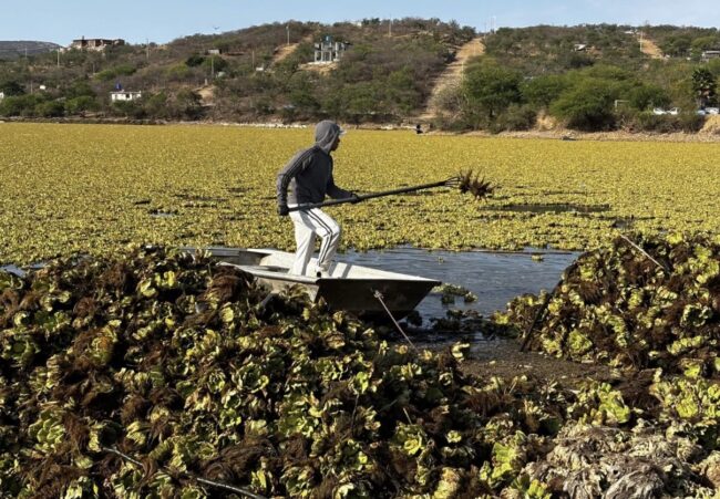 Plaga de lirio acuático afecta presa de San Francisco Yosocuta en la Mixteca de Oaxaca y pone en riesgo sustento de familias que viven de la pesca